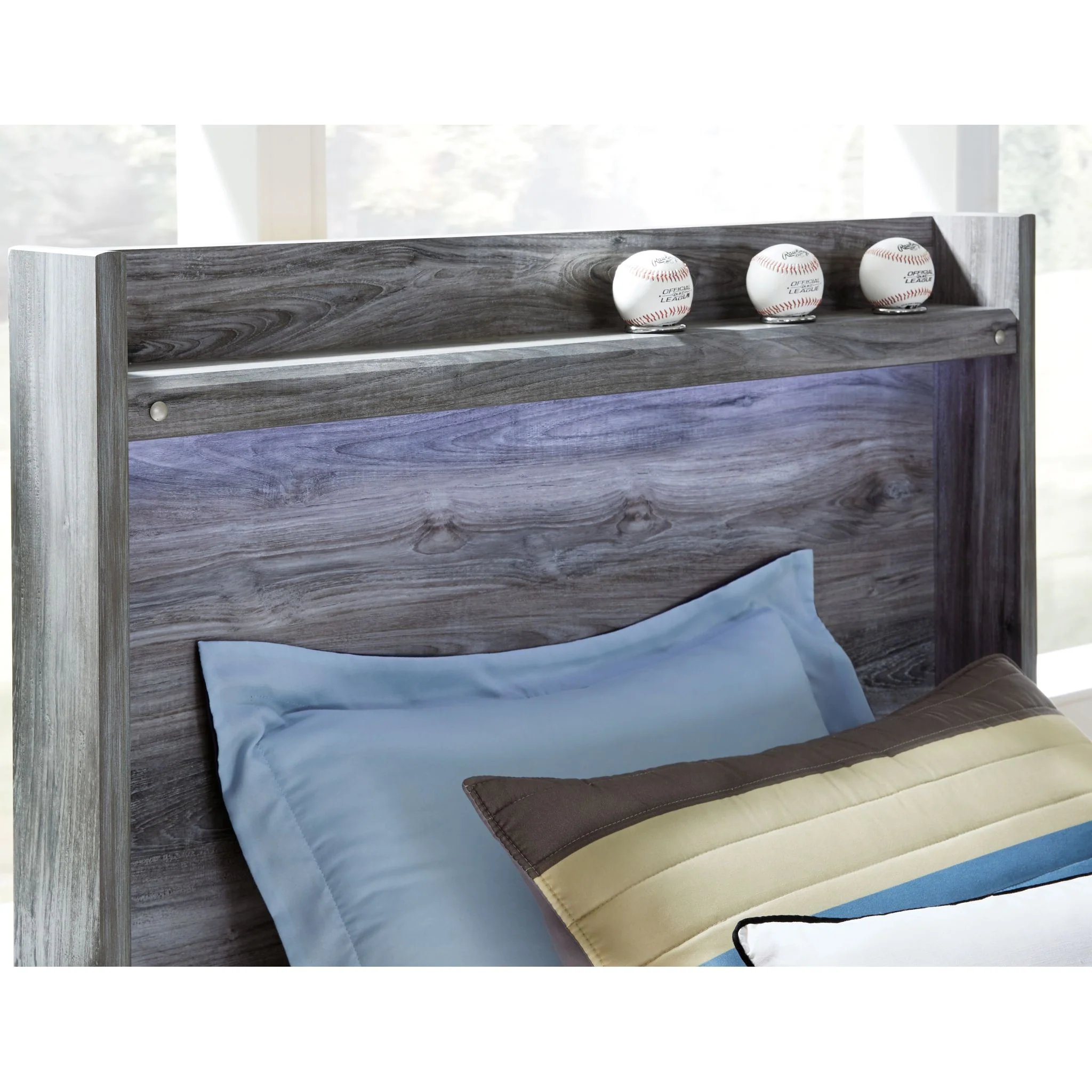 Rest in the beachy style of this full panel bed. Its driftwood and surfer-inspired smoky finish and cool LED lighting give this bed a rustic look that's perfect for creating an island oasis. Clean lines and modern charm blend for an authentic look to be enjoyed for years to come. Mattress and foundation/box spring available, sold separately.