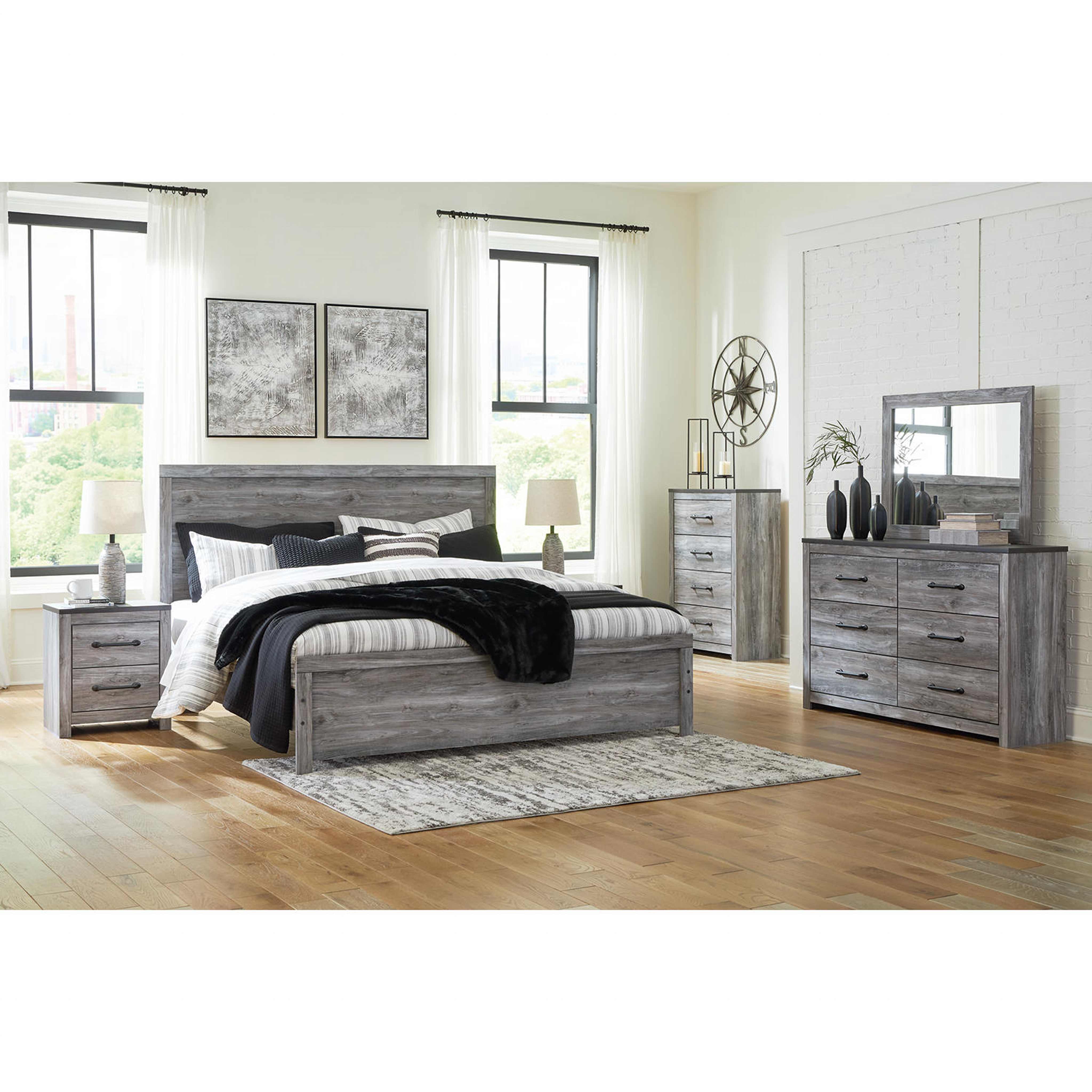 Alluring smoky gray hues create an ambiance that just feels right. This king panel bed has a charming wood-like appeal enriched by neutral tones and a textured look. Its calming presence brings a sense of serenity to your space.