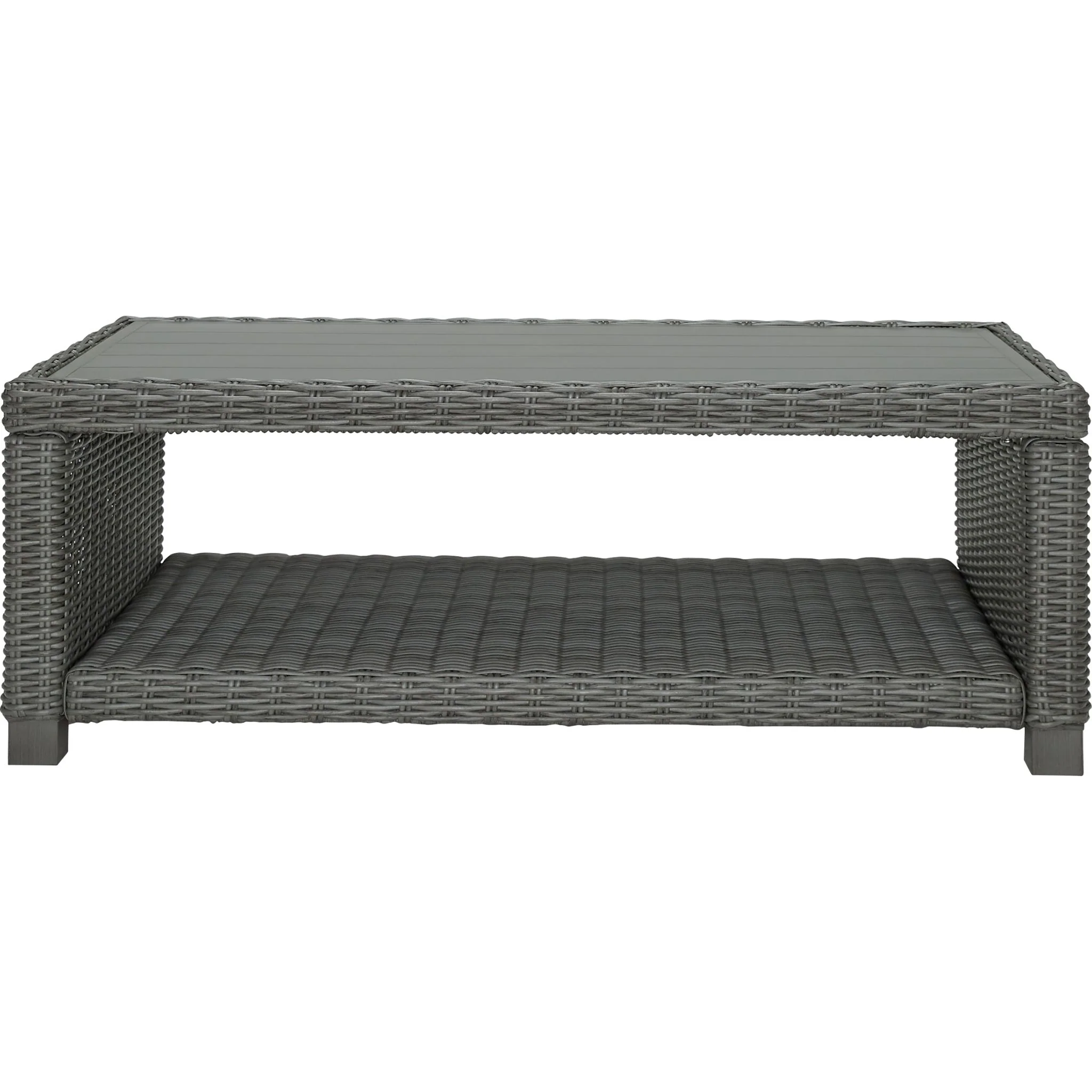 Add a distinguished touch of gray to your outdoor living space with the Elite Park coffee table. This head-turning table is made with resin wicker over an aluminum frame for a relaxed look that provides seasons of enjoyment. Its aluminum top combines the exceptional durability and weather resistance you need with the "wood look" finish you love.